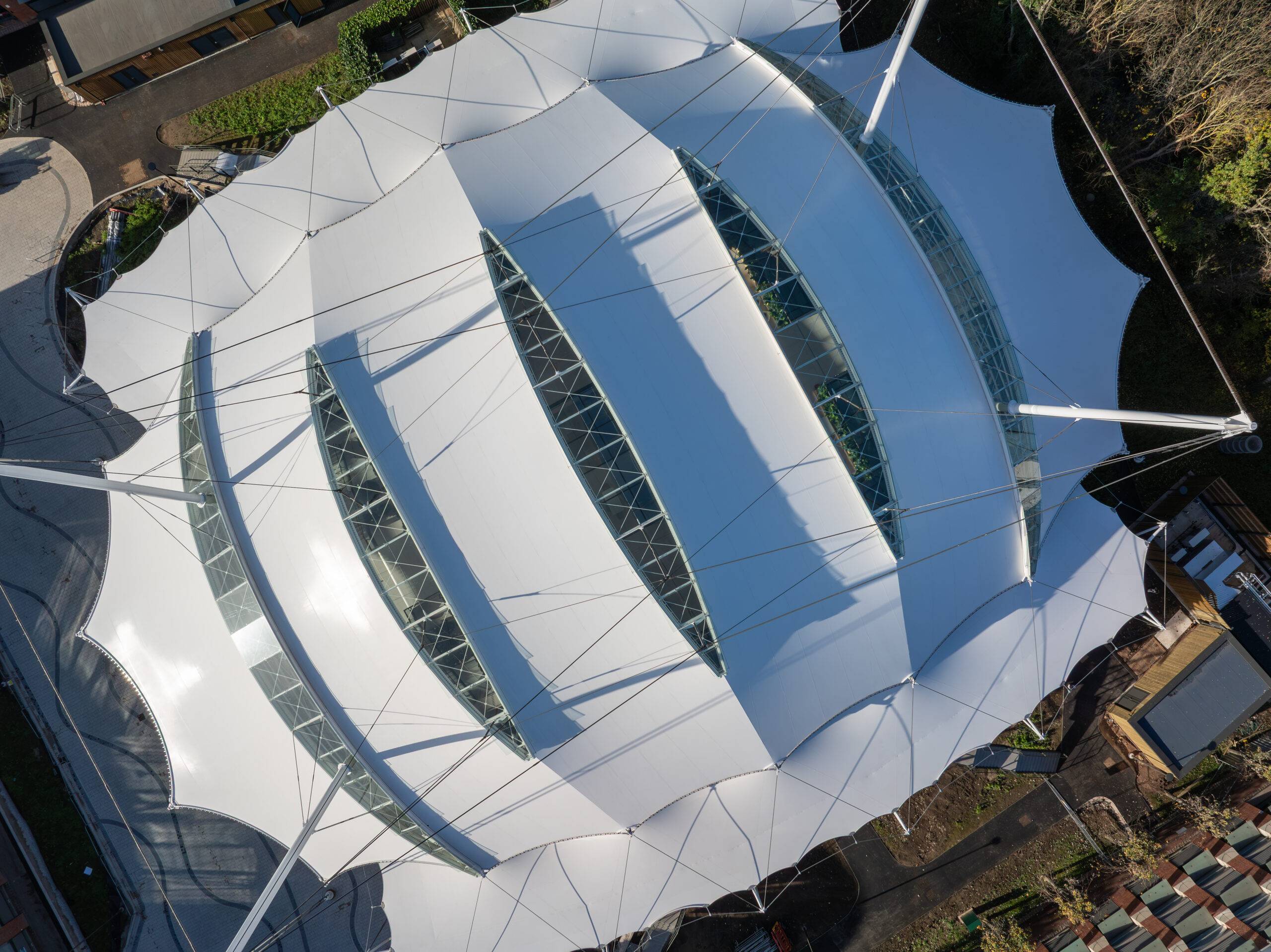 From stunning canopies, facades and temporary stadia to screening, shade structures and shelters. Base Structures design and build world class tensile fabric structures.