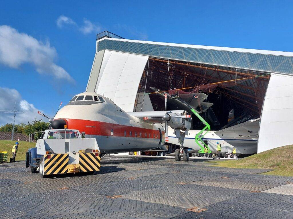 The Museum needed to move a historic Westland Whirlwind helicopter and an Armstrong Whitworth Argosy aircraft inside the hangar for permanent display. To make this possible, a temporary opening had to be created within the curtain wall, an architectural feature we originally installed in 2005.
