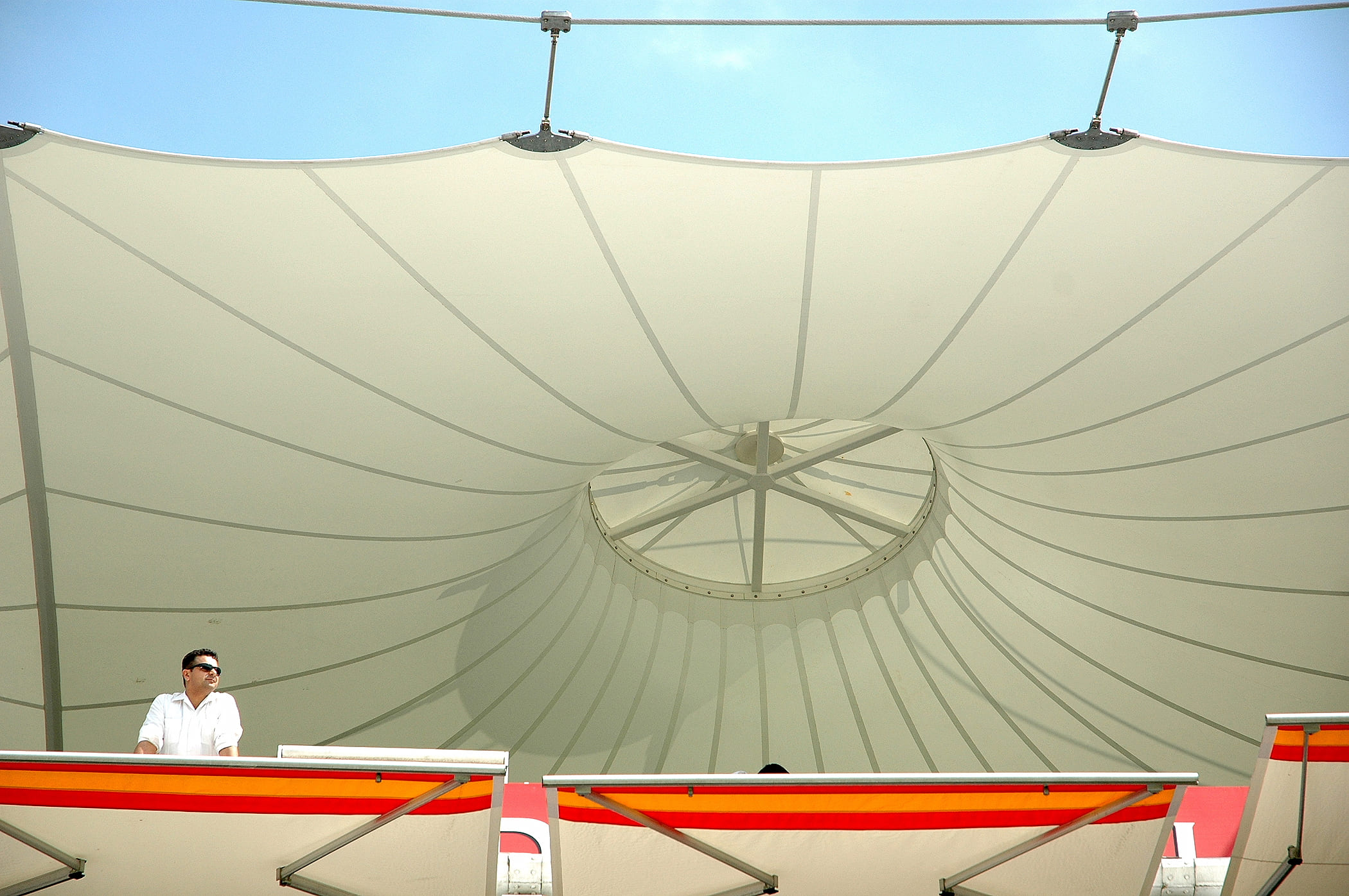 A fundamental part of the contract win was our ability to ensure the recycling of the old canopy and so we partnered with Serge Ferrari (suppliers of the fabric for the new canopy), who have developed and built the Texyloop PVC recycling factory in South Eastern France. The recycling of the old canopy led to Base Structures achieving a finalist Building award for Sustainability in 2006.